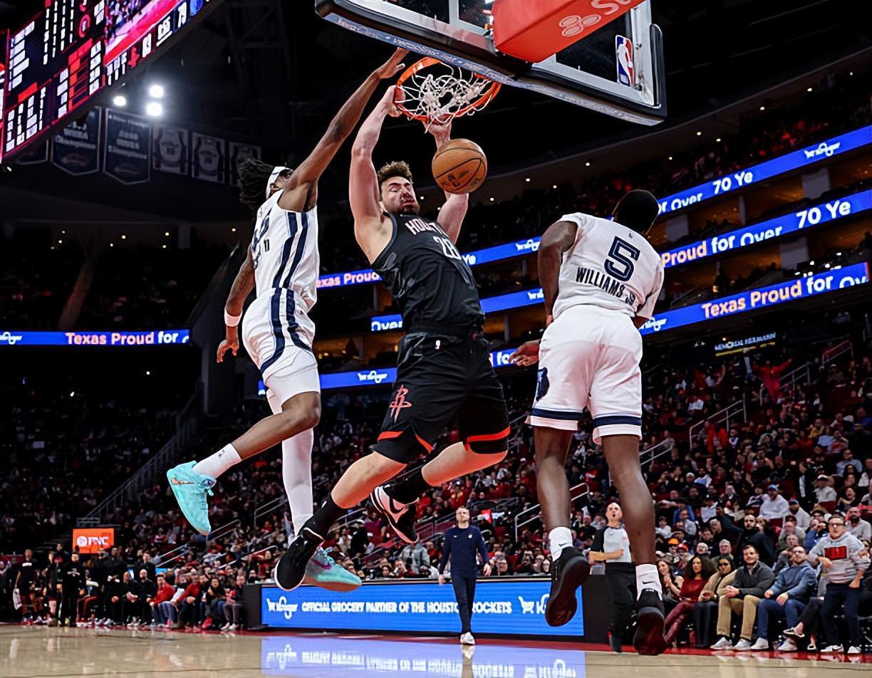 本场比赛中,火箭的先发中锋阿尔佩伦-申京(Alperen Sengun)算是打出了一场现象级的比赛。申京全场出场33分41秒,投篮17中15,三分线外1中0,罚球4中3,得到了33分9篮板6助攻1抢断的全面数据,其中还包括了3个前场篮板,还有5次失误和5次犯规,正负值为+12。申京在进攻端简直是势不可挡,他的进攻效率简直是高到了离谱的程度,对手根本没有办法对他进行有效地限制,他完全就是弹无虚发,给对手内线制造了巨大的压力。申京在其他方面也同样展现出了一定的效果,在防守端地表现也是相当稳定的,在传球和组织方面也是起到了很好的效果的。不夸张地说,但凡申京在本场比赛中的进攻效率稍微差一点,火箭可能都未必能够咬住比分,也未必有机会取得这场胜利。